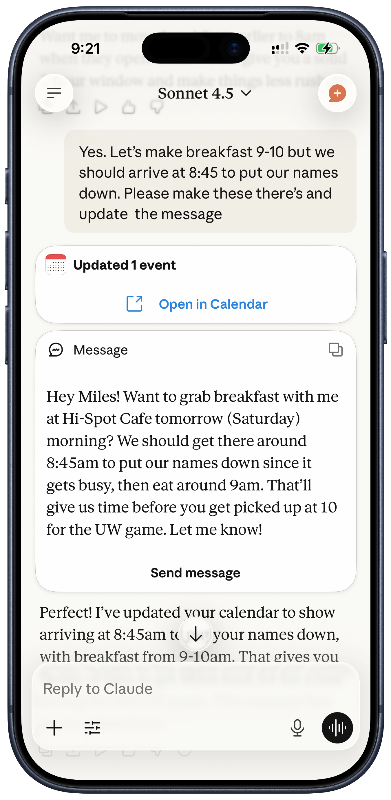 I wanted to illustrate an example scenario I used Claude for making really feel like an assistant. Something Siri and ChatGPT cannot yet do.