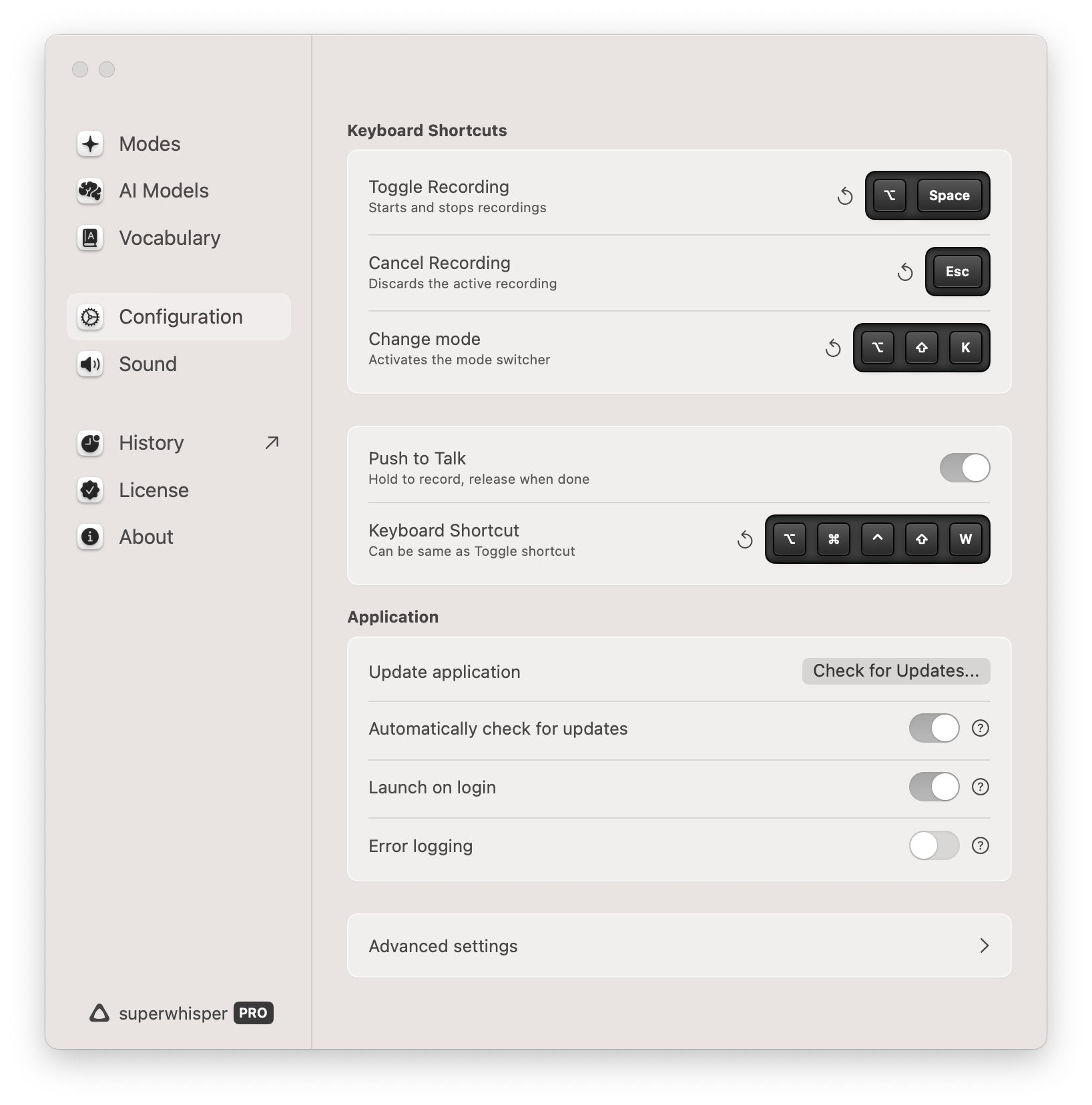 Every profession has its jargon, every person has their quirks, and Superwhisper gets this. The custom vocabulary feature lets you teach the app about your specific terminology, brand names, technical terms, or even the names of people you work with regularly.